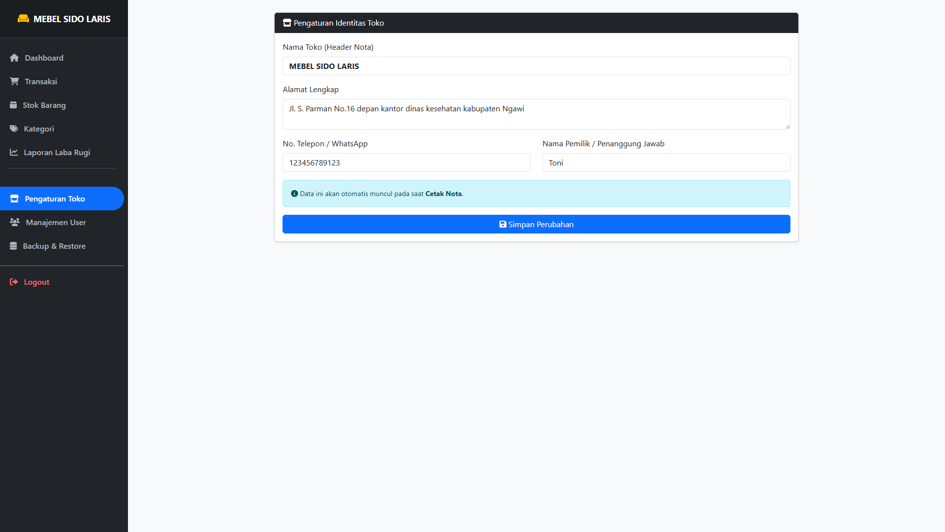 Cetak Nota/Struk otomatis untuk kesan toko yang lebih profesional.